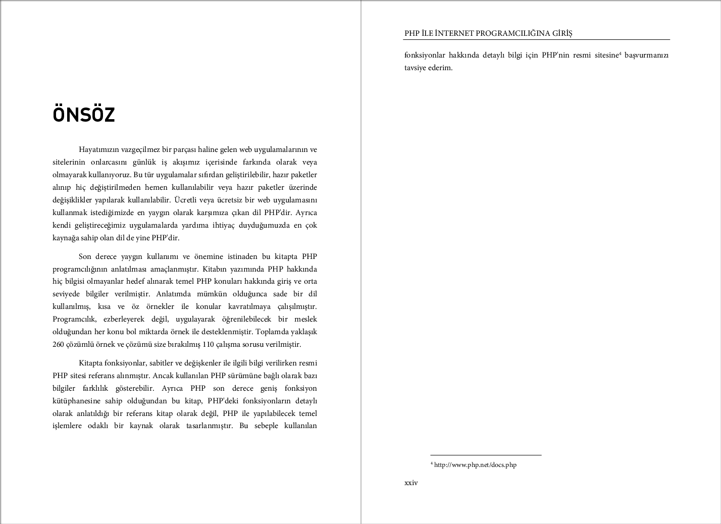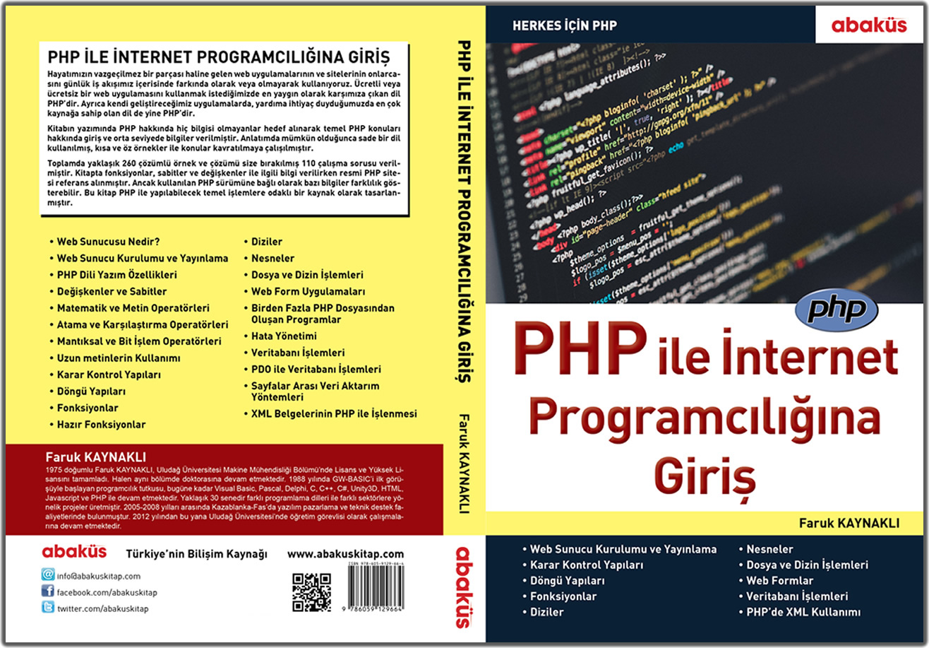 Yaygın kullanımı ve önemine istinaden bu kitapta PHP programcılığının anlatılması amaçlanmıştır. Kitabın yazımında PHP ile ilgili hiç bilgisi olmayanlar hedef alınarak temel PHP konuları hakkında giriş ve orta seviyede bilgiler verilmiştir. Anlatımda mümkün olduğunca sade bir dil kullanılmış, kısa ve öz örnekler ile konular kavratılmaya çalışılmıştır. Programcılık ezberleyerek değil uygulayarak öğrenilebilecek bir meslek olduğundan her konu bol miktarda örnek ile desteklenmiştir.