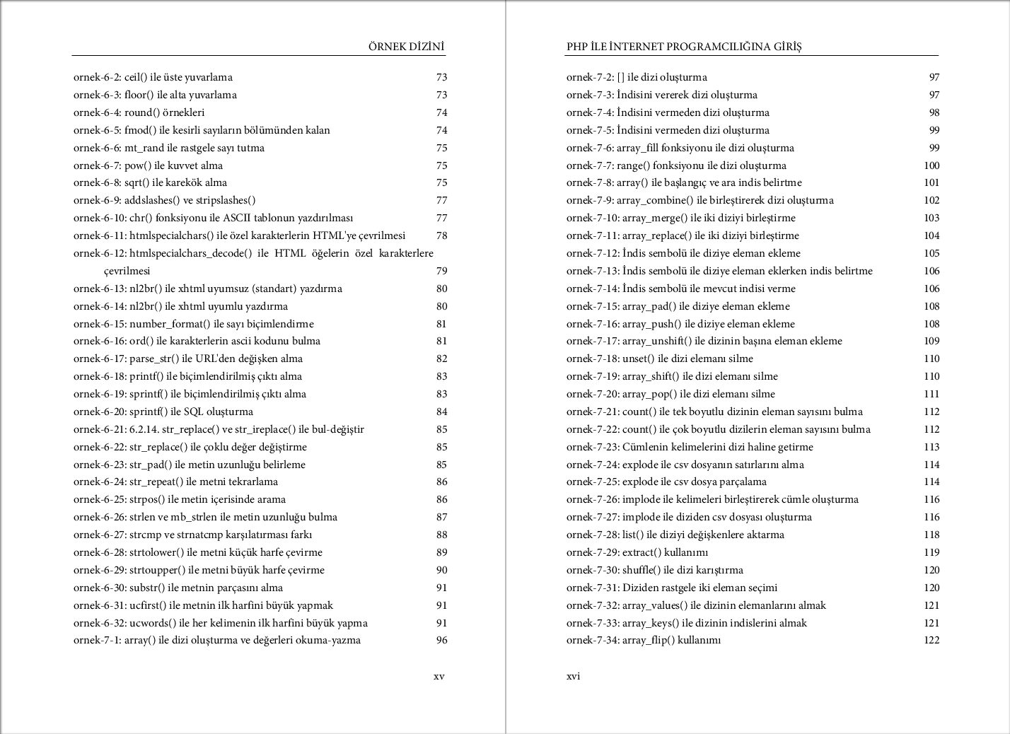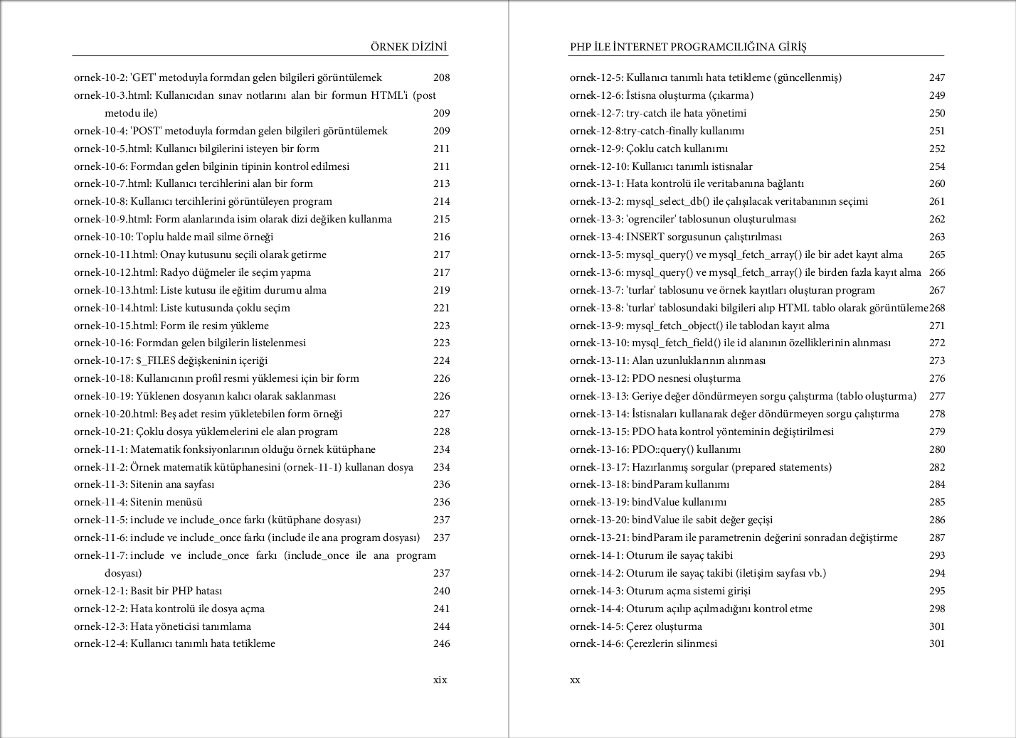 Kitapta verilmiş örnek kodların listesini aşağıda bulabilirsiniz.